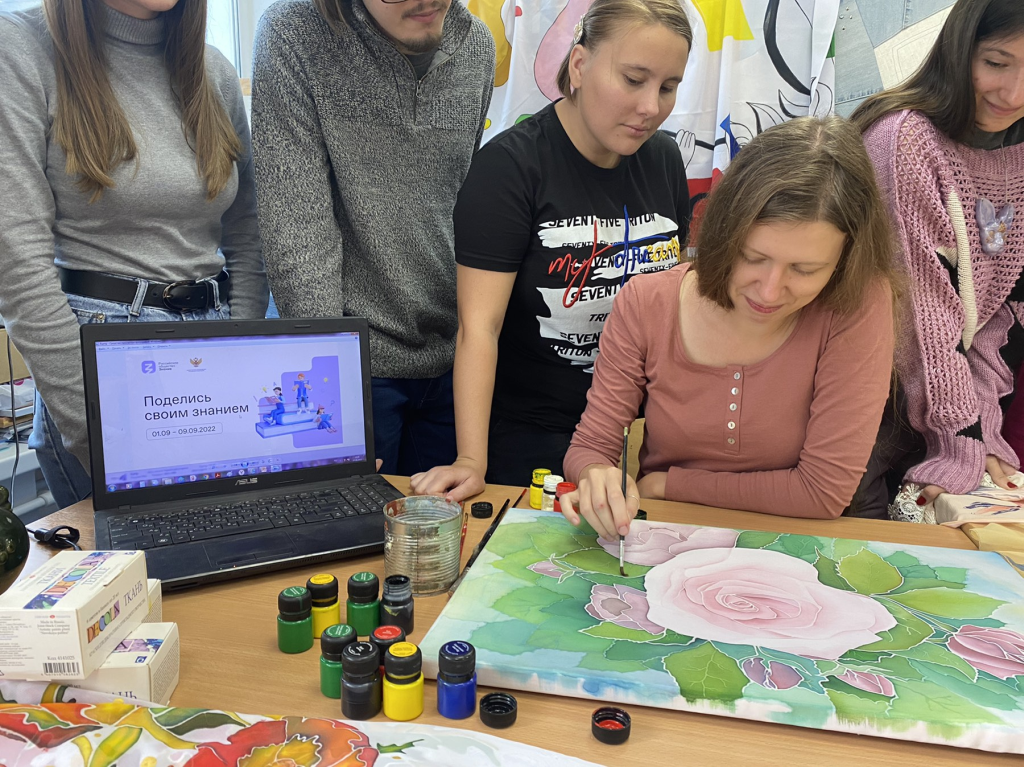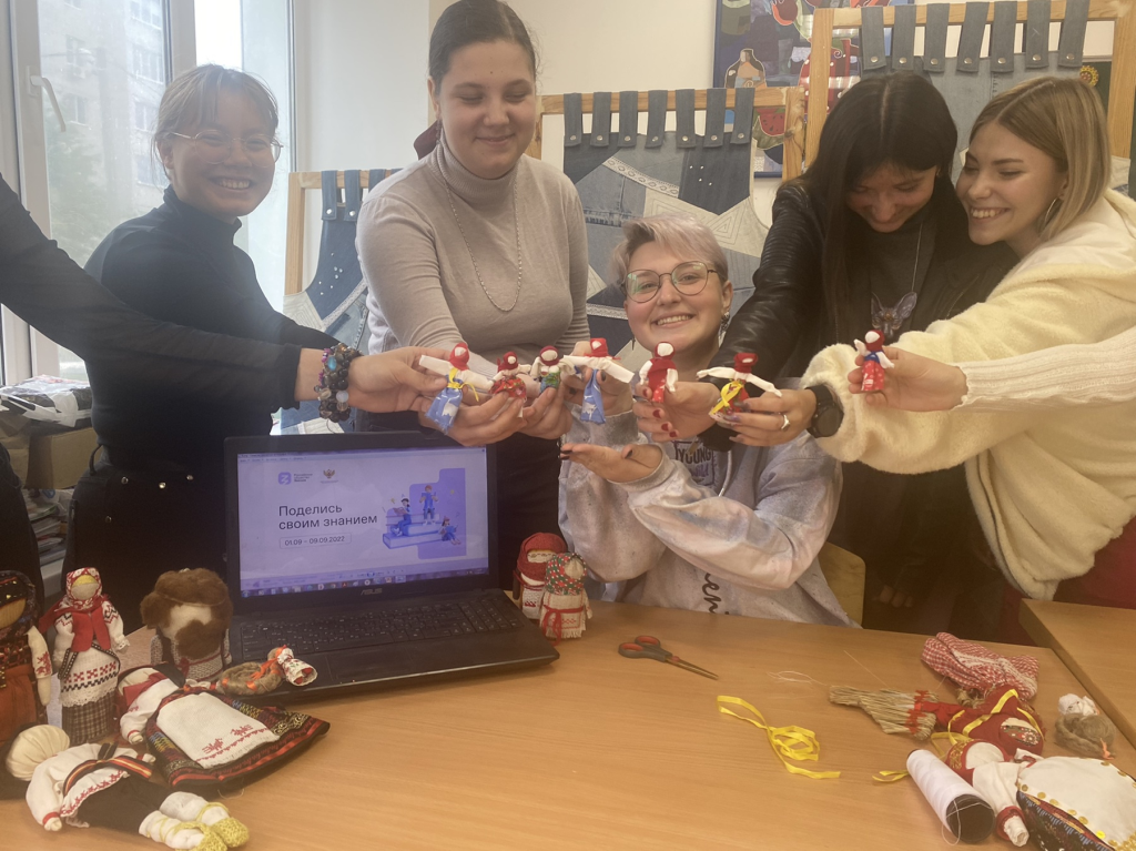 On September 8, the master classes of traditional crafts on the topic «Decorative and applied art: from origins to innovations» were held as a part of the All-Russian action «Share your knowledge» at the Faculty of Design and Technology of our University. Daria Kokhanets, a professor of the Department of Arts and Crafts, a member of the Union of Designers of Russia, introduced the participants to the painting on fabric, the professor of the Department of Arts and Crafts Yulia Manyakhina showed how to make a spin doll, Ekaterina Vildyaksova, a professor of the Department of Arts and Crafts, a member of International Union of Teachers-Artists told about lacemaking.